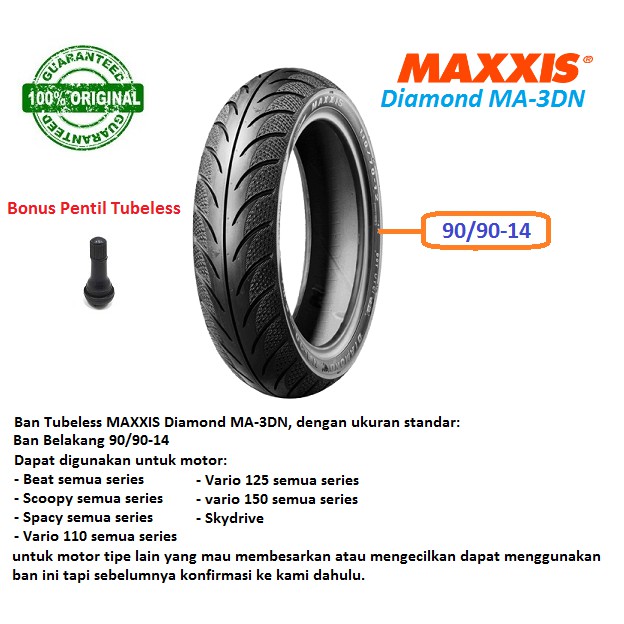 Ban Motor Matic Belakang Tubeless 90 90 14 Maxxis Diamond Ma 3dn Asli Ori Shopee Indonesia